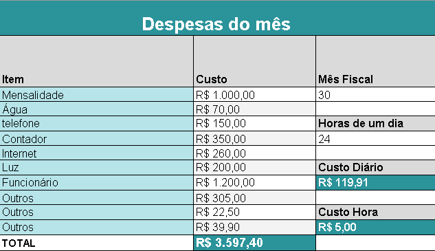 PLANILHA DE DESPESAS DO MÊS