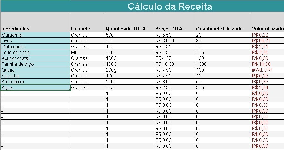 PLANILHA DE CÁLCULO DA RECEITA